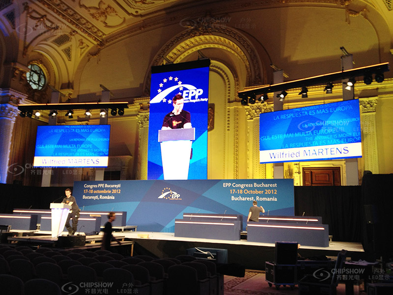 比利时_欧盟EPP会议 室内P5会议用LED显示屏,德国默克尔总理发表重要讲话