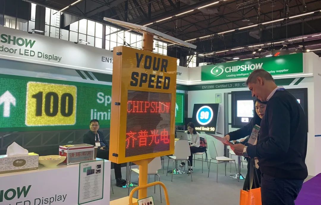 交通用的雷达测速屏也是另一亮点;这款雷达测速屏搭载太阳能充电板和蓄电池,并有滑轮设计,具有全天候不断电能力和高机动性。此款测速屏同样满足交通应用的高亮要求,并能根据光敏自动调节亮度。